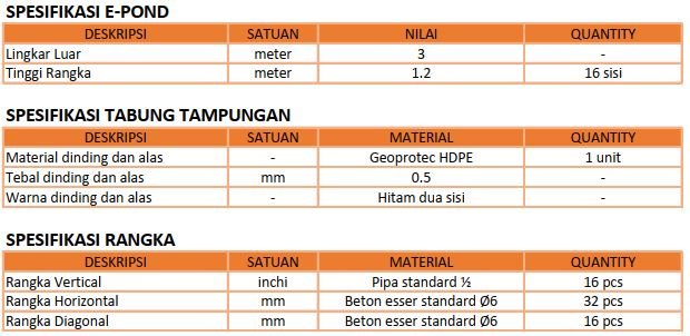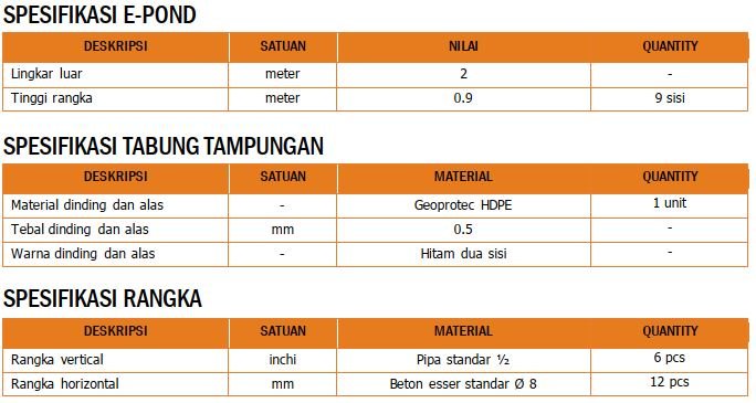 E-Pond adalah penampungan bahan cair praktis siap pakai.